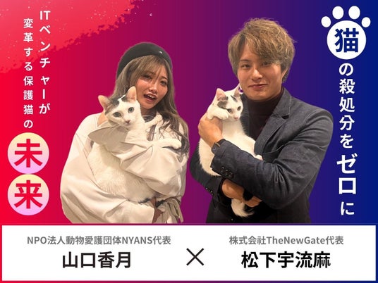 [左]:NPO法人動物愛護団体NYANS代表 山口香月さん [右]:株式会社TheNewGate代表 松下宇流麻