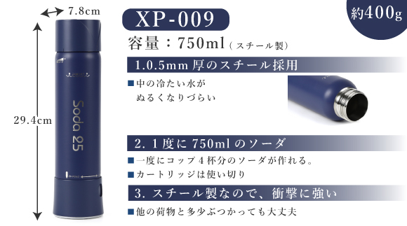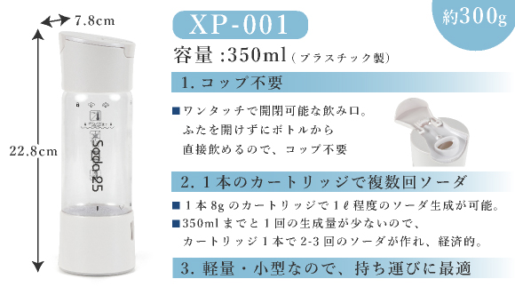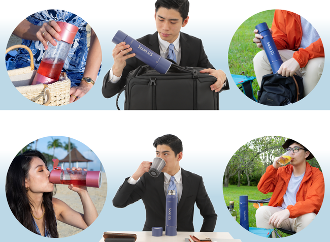 •ハンディサイズと軽量ボディを実現し、オフィスで海で山で。どこでもソーダを手軽に楽しんでいただけます。
