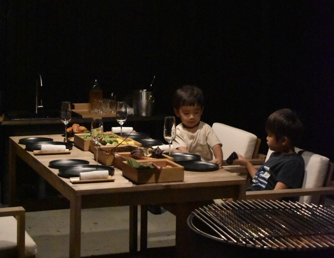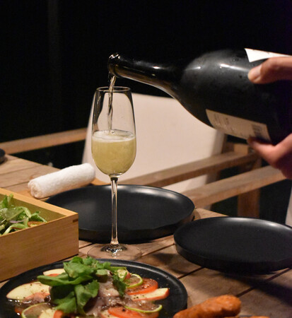 季節ごとに彩りを変える森を見渡すことができるアウトドアダイニングでは、最高級のかずさわ牛や水揚げされたばかりの新鮮な魚介類、みずみずしい野菜や果物など、四季折々の旬の食材をふんだんに用いた料理をお楽しみいただけます。