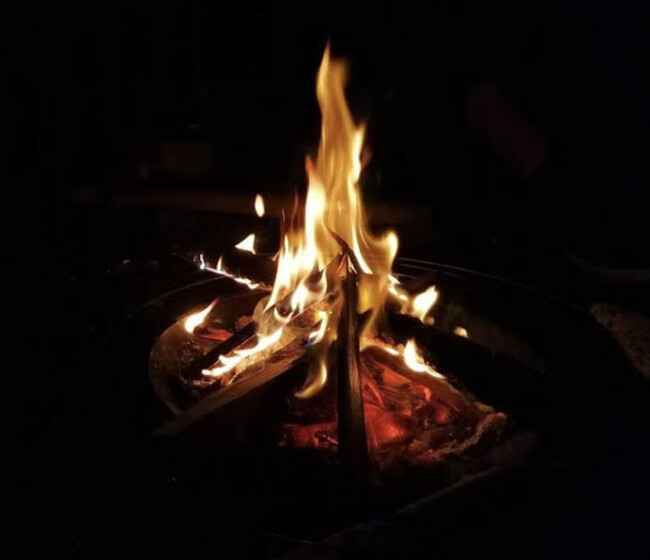 キャンプ場の中心には焚き火台があり、快適なシートで暖を取りながら、周囲の森林の眺めを楽しむことができます。このスポットは、カジュアルなお食事や、星空の下、静かな森に耳を澄ませながらゆったりと過ごすのに最適です。毎晩、夜になるとディナーを終えたゲストが焚き火を囲み、その日の出来事について語らうサロンのような役割も果たしています