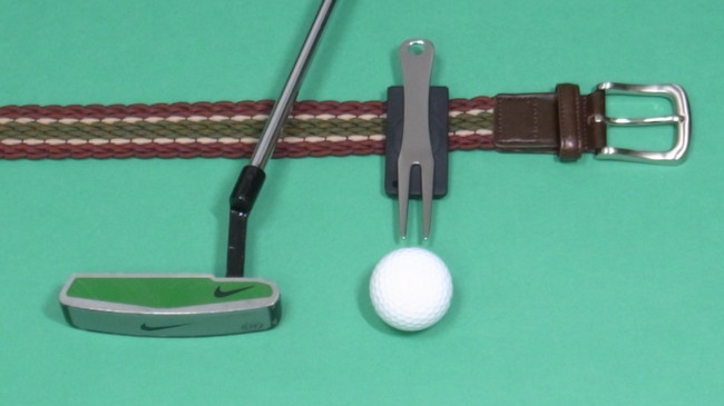 ・ゴルフで使うキャディフォークを付けることでポケット内に砂や土などの侵入を防ぎます。