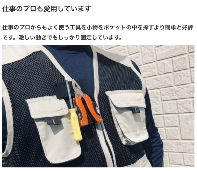そこでスマホをポケットに入れずに胸元に磁石で簡単脱着できるように高磁力のマグネットを開発するとともに、スマートで固定できるように試行錯誤のうえに新開発されました。早速、宅配業務でテストすると1日20分時短に成功するとともに、一度もスマホが落下しなかったのです。この商品はスマホ以外にも多用途に使えることから「どこでもクリップ」と命名されました。