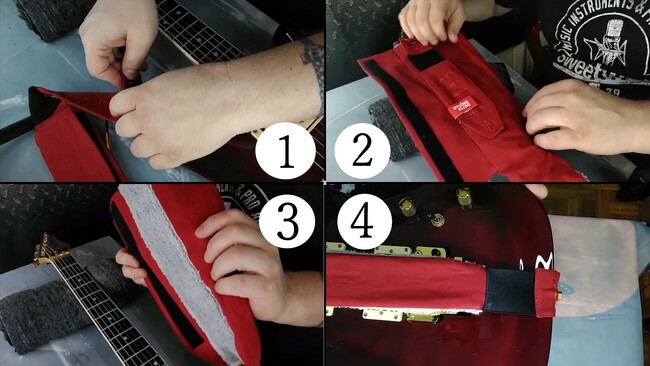 String Sling(ストリング スリング)にはマイクロファイバークロスが搭載されています。柔らかく素材を傷つけにくいフワフワとしたクロスによって、ギターの弦を包み保護することで張りたての状態を長く維持できます。