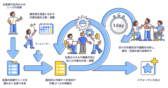 働く時間や場所にとらわれないコミュニケーションや情報共有が可能になる。