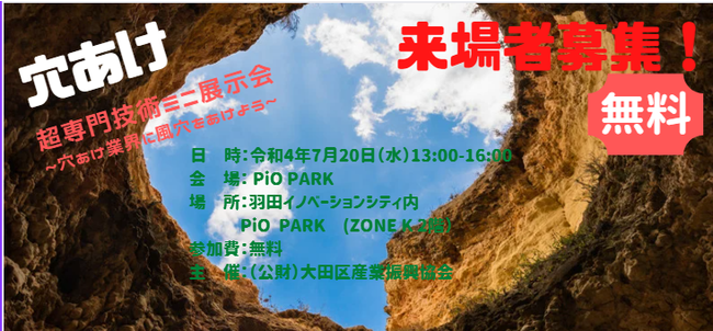 大田区産業振興協会(東京都大田区南蒲田1-20-20)は、「~超専門技術ミニ展示会 『穴あけ』~ 」 を2022年7月20日(水)に開催いたします。敢えて穴あけだけに特化した産業のまち大田区ならでは展示会です。