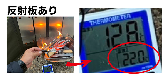 反射板があることにより、無しに比べ3~4℃ほど、温度が高くなりました。