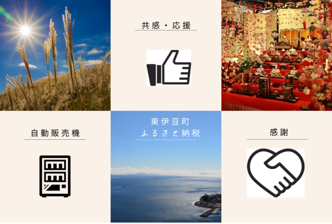 東伊豆町のふるさと納税事業の新たな試みとして、ネットからのふるさと納税だけではなく、「共感応援型」のふるさと納税を実現するため、自動販売機事業を実施します。