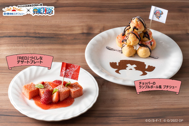 「ウソップのホットドック」、「サンジの焼き石シチュー風」など「ONE PIECE」のキャラクターにちなんだフードやドリンクメニューを提供します。