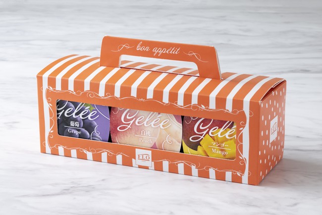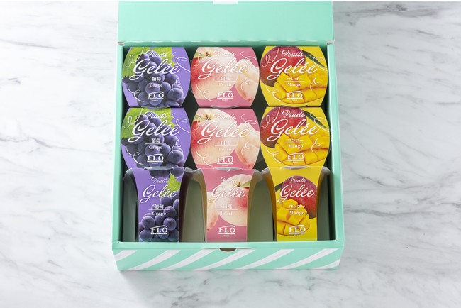 毎年人気のFLOのジュレギフト。今年は、葡萄、白桃、マンゴーの3種を詰合せに。