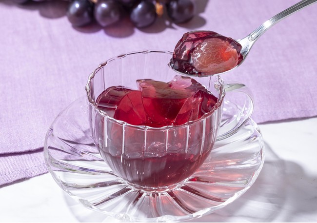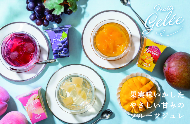 2022年のフルーツジュレは、白桃、葡萄、マンゴーの果実味をいかし、やさしい甘みで涼やかに仕上げました。