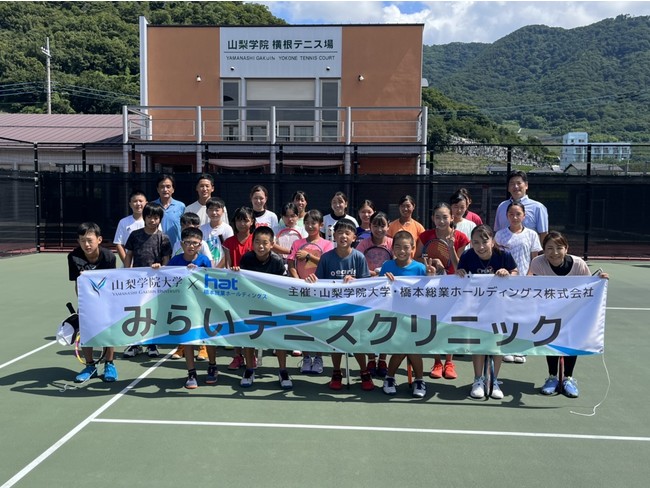 橋本総業ホールディングス株式会社(本社:東京都中央区、代表取締役:橋本政昭)は、産学連携協定の社会貢献事業の一環として「みらいテニスクリニック」を、山梨県・山梨学院大学にて2022年7月10日に実施しました。