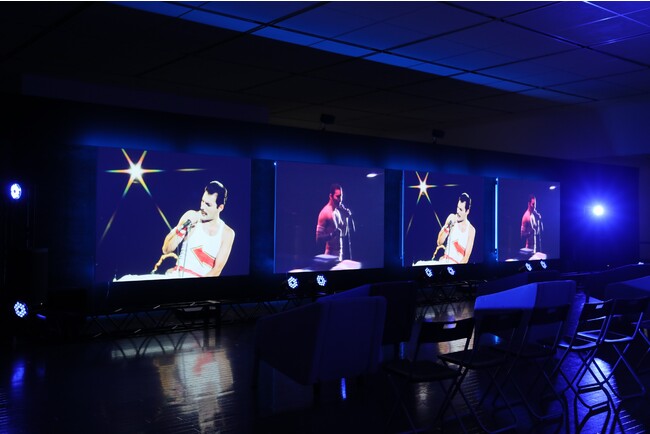 会場には150インチの4面マルチスクリーンによる「Immersion Theater(イマージョン シアター)」を設置いたします。Immersion=没入の名称からイメージする通り、映像に特別な演出を連動させ、クイーンのライヴ空間に入り込んでしまったかのようにお楽しみいただきます。