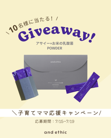 社会の問題や課題を企画と開発で解決に取り組む、mima株式会社(東京都港区)が手掛ける『and ethic』にて、子育てママを応援するプレゼントキャンペーンを2022年7月15日(金)~19日(火)の5日間限定で開催いたします。