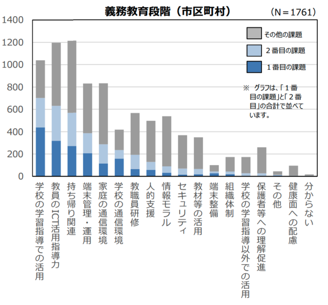 教育現場における課題としてあげられているのは、1番が「学校の学習指導での活用」、2番が「教員のICT活用指導力」でした。(※2 文部科学省による調査を参照)