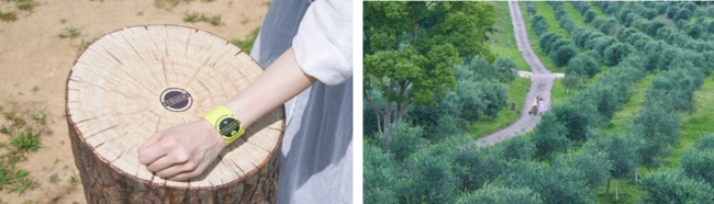 ぶオリーブの葉の緑に、日本の里山らしいクヌギやコナラが混じりあうここにしかない景色が広がっていま