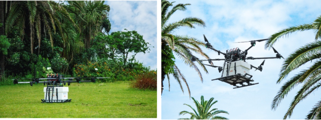 宿泊いただいたお客さまに、安全な遠隔制御・長距離飛行が可能なKDDIスマートドローン(https://kddi.smartdrone.co.jp/)の「スマートドローン」で、特産品などの地のものをお届けします。迫力あるドローンの飛行や着陸する様子を間近で見られます。