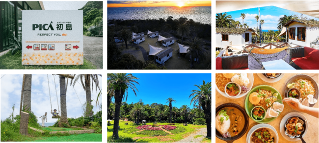 首都圏から一番近い離島「初島」。エキゾチックな亜熱帯の植物に囲まれた豊かな自然の中、ゆっくりと流れる贅沢な時間を過ごせる「 PICA 初島」は、宿泊施設「アイランドキャンプヴィラ」をはじめ、日帰り温浴施設と アスレチック、シーフードバーベキューやアジアンフードが楽しめるレストラン、夏季限定のプールなど、キャンプも、日帰り旅行もどちらとも初島を楽しめるリゾート施設です。