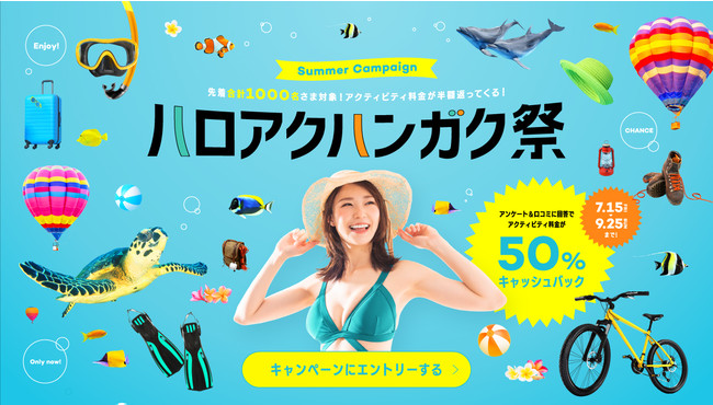 株式会社MEGURU(代表取締役:上原嗣則、本社:東京都千代田区、以下「当社」という)が運営する、旅行者と国内外のアクティビティ主催会社を直接つなぐマッチングプラットフォーム『Hello Activity(ハロアク)』では、2022年7月15日(金)よりアクティビティ料金の半額をキャッシュバックする「ハロアクハンガク祭」を開催いたします。