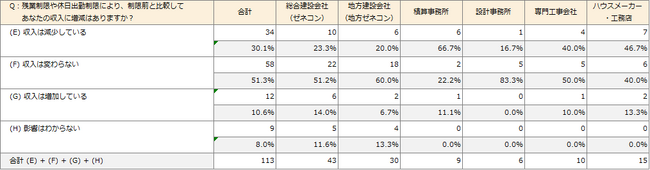 残業規制による積算従事者の収入減少に課題