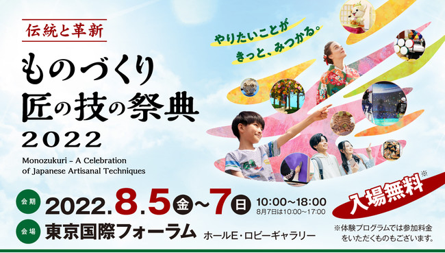 東京都は、伝統的な匠の技やものづくりの技能・技術の魅力を発信する「ものづくり・匠の技の祭典2022」を、2022年8月5日(金)から7日(日)の3日間、東京国際フォーラムにて、一般来場者を迎えて開催いたします。