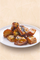 甘く仕上がった濃密焼き芋を高温でさっと揚げ、蜜をたっぷりかけて大学 芋に仕上げ、口の中でとろける食感を生みだしました。
