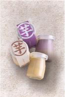芋のペーストがとプリンが二層にわかれており、中には角切りのりんごが入 っています。りんごの食感と二つの味が楽しめます。