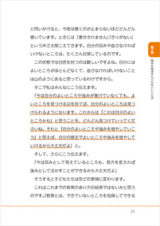紙とペンを使い本書の内容に習い書き出す事で、子どもの長所と短所を認識し伸ばすべき方向性を見つける手助けになります。