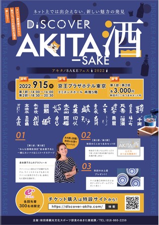 2022年9月15日(木)新宿駅近くの京王プラザホテル東京で「アキタノSAKEフェス2022」が開催されます。秋田県内の日本酒蔵元28社が選りすぐりの日本酒を提供し、一人3,000円で試飲し放題+秋田県産食材を使用したミニおつまみセット付となっています。