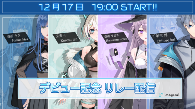 株式会社イマグリアル(本社:東京都渋谷区 代表取締役:原 竜二、以下「当社」)が運営するVTuberプロダクションは2022年12月17日(土)より4名のライバーがデビューすることをお知らせいたします。