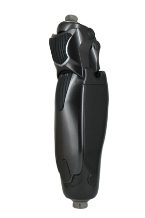 『ALLUX(アルクス)』は2015年にナブテスコが開発した世界初の四軸油圧電子制御膝継手です。人間の膝関節に似た動きをする四節リンク機構と、膝の屈伸抵抗を自動調整する油圧電子制御を組み合わせることで、これまでにない安定性と快適性を追求しました。センサーとマイクロプロセッサーで歩行状態を検知し、義足装着者の歩行に合わせて速度を変えたり、坂道や階段などでも不意の膝折れの心配なく歩行することができます。2020年に発売した最新型の『ALLUX2』では、専用のアプリを使用することで、スマートフォンで義足装着者自ら使用環境や場面に応じてモードを切り替えることができ、さらに自由に安心してご使用いただけるよう機能が追加されました。
