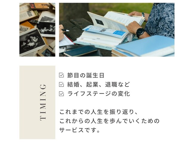 サービス特徴 ーライフステージの節目に人生を振り返り、これからの人生を歩んでいくためにー