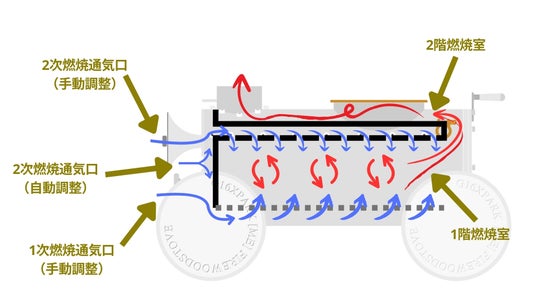 2、高効率な燃焼システム:独自の二次燃焼システムと二段構造により、燃焼効率が飛躍的に向上し、これまで見られない高効率な燃焼を実現します。これにより、煙の排出を最小限に抑え、環境にも優しい設計となっています。