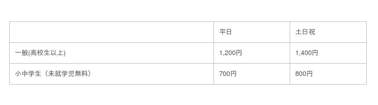 *施設が定める特定日(GW/お盆等)、及び企画営業(初日の出/花火大会等)については、上記料金とは異なります。