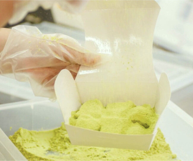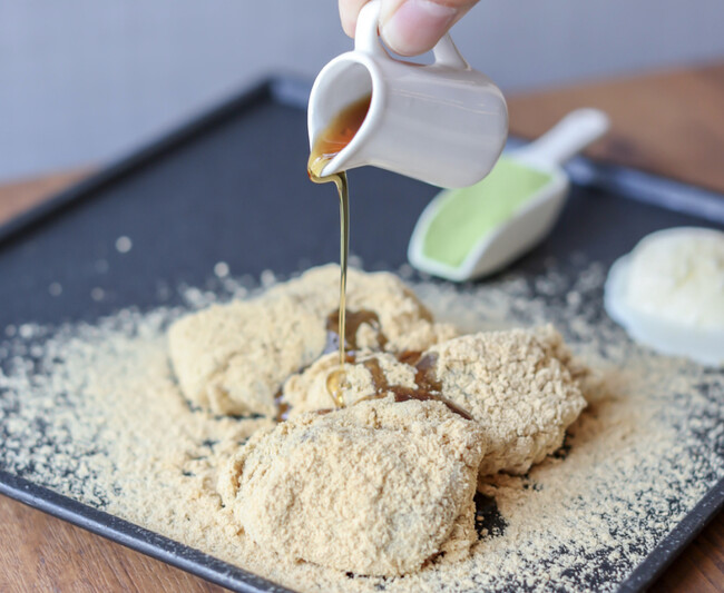 国産きな粉をふんだんにまとったわらび餅は、食べればその食感に感動を覚えるほど。門外不出の配合率が生み 出す、とろっとろな究極のやわらかさがクセになります。一度食べればハマること間違いなし!爪楊枝が刺さら ないほどの食感をぜひ一度体験してみてください。 初めてお召し上がりいただいたお客様からは「こんなわらびもちは食べたことがない!」とのお声をいただきま す。味のバリエーションは2種。王道の「和三盆」、ほろ苦さがわらび餅との相性抜群の「抹茶」です。 人気の 抹茶味は京都祇園で160年以上の歴史を誇る老舗茶屋「北川半兵衛商店」の抹茶をふんだんに使用しており、少 しの苦味の中に甘さを感じる上品な風味を味わえます。
