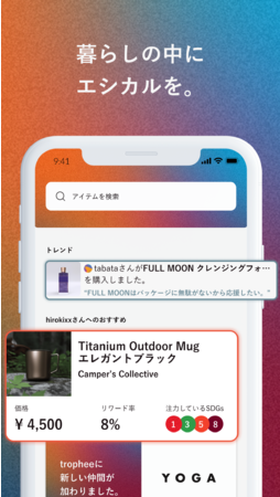 すでに“エシカル“に興味を持って行動しているユーザーも、興味はあるけど行動に移せていないユーザーも、当サービスを通じて「自然に・気軽に・楽しんで」日々エシカルな行動を増やしていくことで、そうした行動や考え方が人々の生活に深く根付いていくことを目指しています。