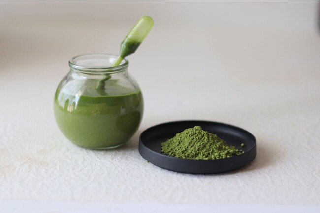 今回使用した抹茶は、玉露のような強い旨味と濃密な香りが特徴で、茶の奥深さを堪能できる高級抹茶です。また、その年の最初に生育した新芽を摘み採った一番茶を使用しているため、他の抹茶よりも新鮮な状態の抹茶を使用しています。