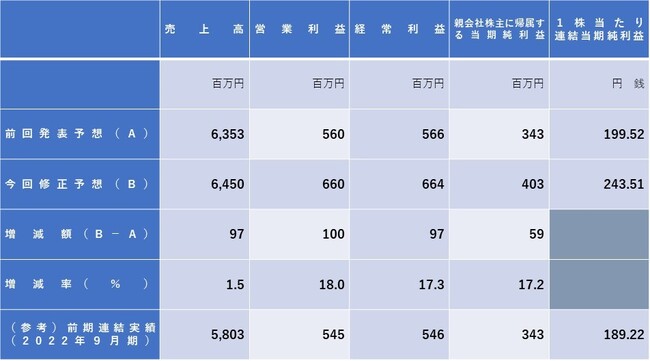 1.2023年9月期通期連結業績予想数値の修正(2022年10月1日~2023年9月30日)