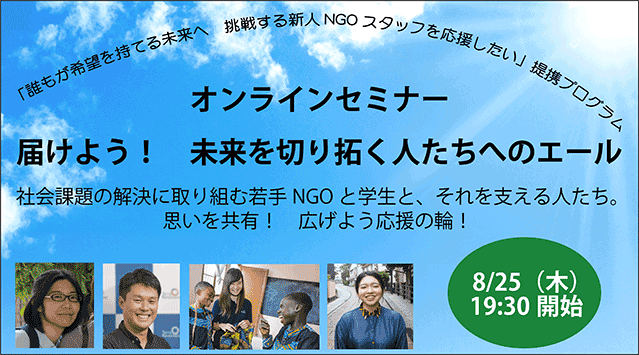 「活動する人」も「応援する人/支える人」も、未来がより暮らしやすい世界であってほしいと願う気持ちは同じ。NGOで働く新人たちの勇気や笑顔、苦労を分かち合い、応援の輪を広げる場にしたいと思います。