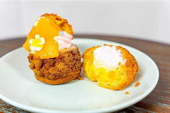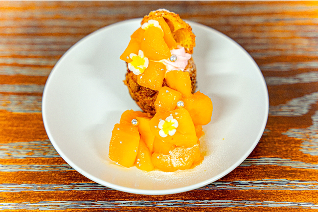 沖縄県産のマンゴーをこれでもかとトッピングすることができる。どのシュークリームとの組み合わせることができ、多彩な組み合わせを楽しむことができる。