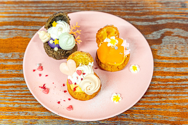 「幸せの南国シュークリーム」は、定番のカスタードシュークリームや沖縄名物紅芋、地元で取れたマンゴーなどをふんだんに使用した、贅沢&映えの新感覚シュークリーム。