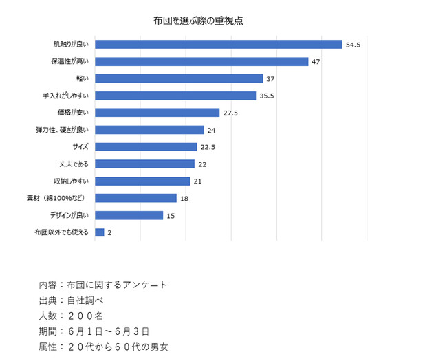開発にあたってまずは、一般の方を対象に「布団を選ぶ際に重視していること」についてアンケートを実施しました。