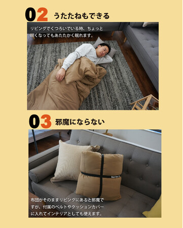リビングに置いておけるので、わざわざ寝室から布団を持ってくる必要がないのです。