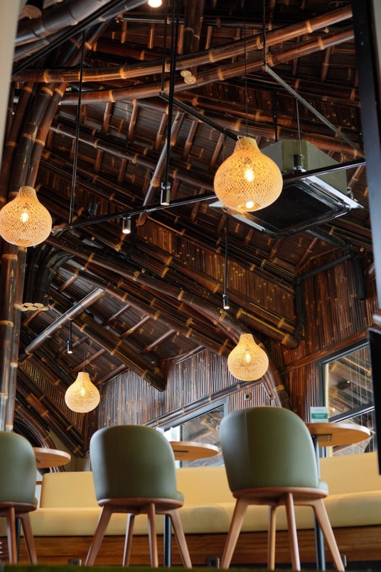 今回オープンしたスターバックス クタマンダリカは、竹のしなやかさと強度を活かしたデザインが特徴です。天井まで伸びる壮大な竹のアーチ、開放感あふれる空間、そして自然素材ならではの温もりが、訪れる人々に特別なひとときを提供します。