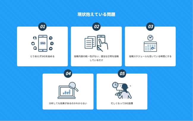 多くの若者の方はInstagramを使いこなし、普段の生活を手助けするツールとして利用されています。しかし、見る側の若者と実際にアカウントを運用する企業との間でのギャップが生じてしまいユーザーが本当に見たいコンテンツを提供できていないような状況が多くなっています。リソース不足や運用する時間がない、どのようなコンテンツを投稿したらいいのかわからない、全然リーチやフォロワーを獲得できないなどの課題を抱えていらっしゃる事業者様が非常に多いです。