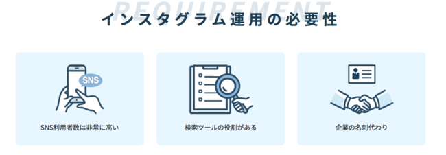 Instagramというツールは現在日本で多くの利用者が存在しています。また、特にZ世代と呼ばれる若者世代にとってInstagramは欠かせないツールとなっており、何か食べたい、見たい、行きたい、といったときの下調べのようなものはGoogle検索と同じようにInstagramの検索機能が使用されています。飲食店などの店舗事業を行なっているところではそのお店の名刺代わりとしての役割もインスタグラムが果たしてくれます。