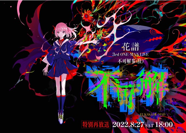 現在18歳の彼女は、2018年10月より素顔を明かさずに3Dモデリングされたアバターを使って活動している。YouTube総再生回数は2億回を超え、国内外に熱狂的なファンコミュニティを持つ。VTuber初となる日本武道館でのワンマンライブ、花譜3rd ONE-MAN LIVE「不可解参(狂)」を8月24日(水)に開催。