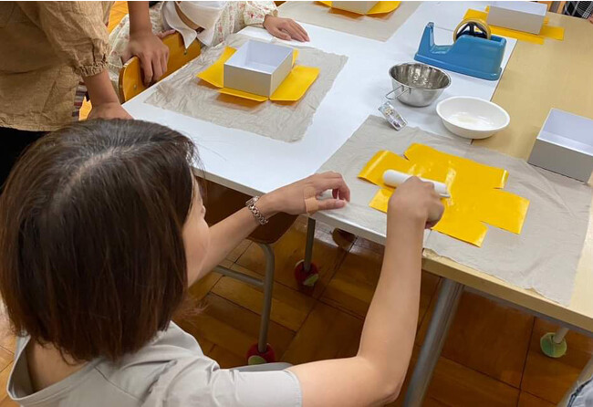 そんな中、野村紙器の営業企画部長・野村菜月は「将来のものづくりの担い手である子供たちに、ものづくりの楽しさを知ってほしい」との思いから貼り箱の製作体験を有松中学校に提案し、キャリアナビゲーターと連携して本企画を立案しました。