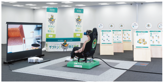 イス型の地震動体験装置「地震ザブトン」で過去に起こった様々な地震のリアルな揺れを体験し、家具固定など日頃から地震に「備える」ことの必要性を再認識していただくため、JA共済が独自に開発した体験学習型イベントプログラムを展開しています。