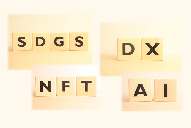 また、「SDGS」や「DX」「NFT」「AI」「SAAS」など、話題の用語素材も豊富に取り揃えています。