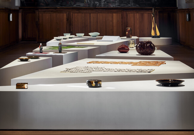 今春、イタリアのヴェネツィアで世界各地の優れたものづくりを紹介する「ホモ・ファーベル展」(4月10日~5月1日)が開催され、その企画の一つ「12 Stone Garden」では、陶芸、染織、漆芸、人形など12名の重要無形文化財保持者(人間国宝)とその作品が紹介されました。日本の人間国宝の作品を一堂に集めた本展は、日本の新しい魅力としての伝統工芸がイタリアの人々を魅了しました。本展は、多くの出品者や関係者の強い要望を受け、ヴェネツィアにおける企画を帰国展として、プロダクトデザイナーの深澤直人と当館館長・内田篤呉のキュレーションにより開催するものです。深澤直人デザインの展示空間に、写真家・川内倫子による映像とともに、12人の人間国宝の作品を紹介します。
